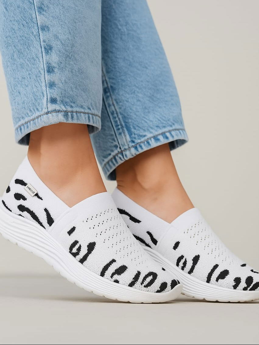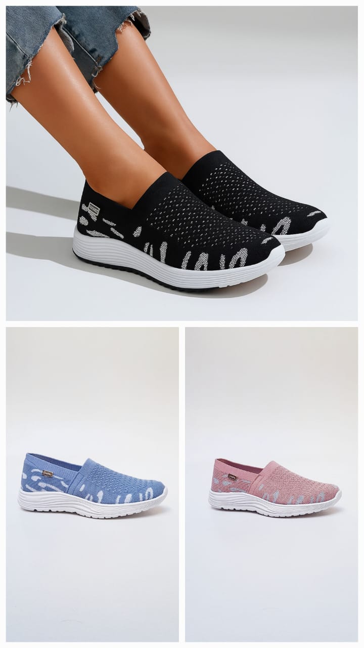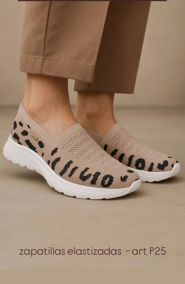 Zapatillas elastizadas casual, base liviana y con refuerzo en puntera y talón.
